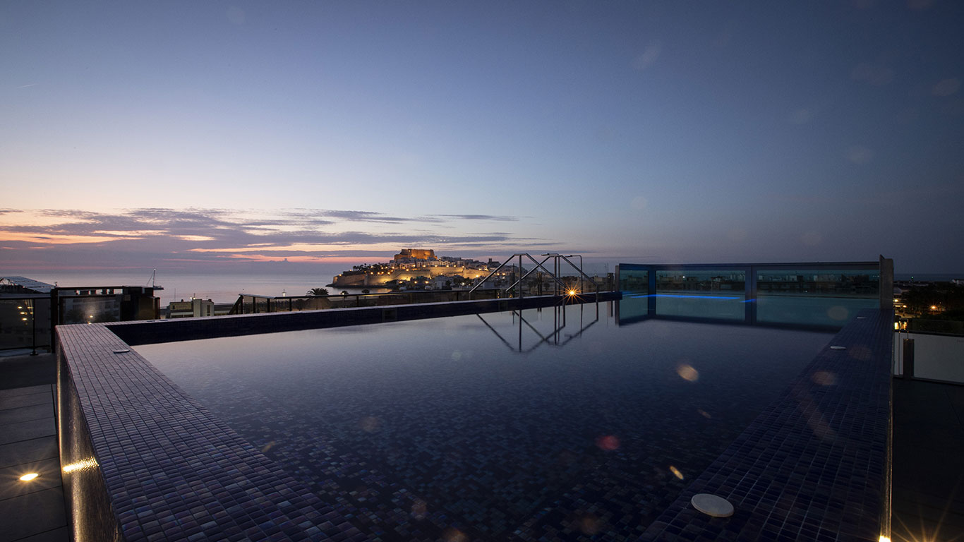 El hotel también cuenta con un nuevo espacio en la terraza superior del hotel, con una Piscina hidromasaje con paredes de cristal suspendida en el aire con vistas panorámicas.